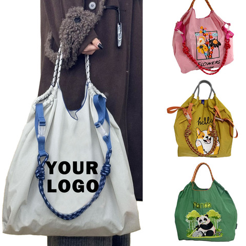 Biểu Tượng Tùy Chỉnh Nhật Bản Phong Cách Bóng Chuỗi Túi Vải Nylon Thêu Thân Thiện Với Môi Túi Mua Sắm Vai Duy Nhất Đi Làm Tote Túi