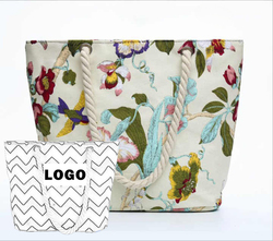 Biểu Tượng Tùy Chỉnh Công Suất Lớn Bông Vải Tote Túi Thời Trang Hoa In Người Phụ Nữ Của Túi Xách