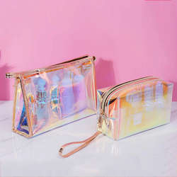 Túi mỹ phẩm Laser Iridium tùy chỉnh Túi Quà Tặng rực rỡ trong suốt túi lưu trữ di động